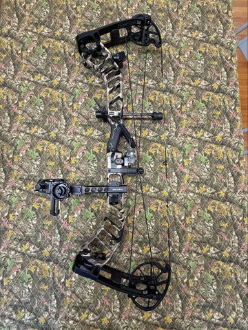 Prime Rev-X4 with Hamski Epsilon Arrow Rest, UltraView single-pin sight, 27.5” draw length, 70 lb limbs (includes extra 60 lb limbs).